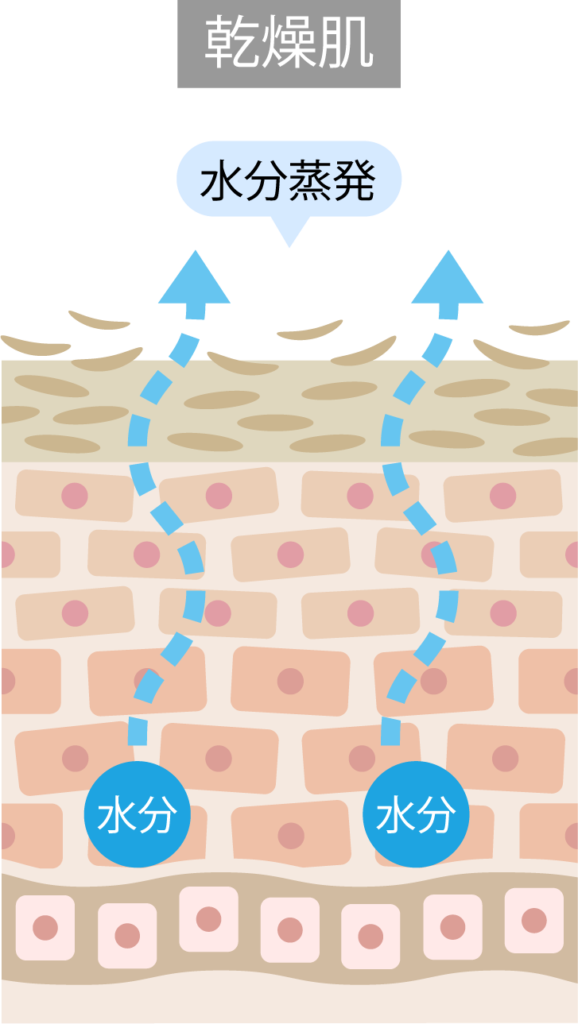 → 角層が厚くなることで、水分が角質層の奥まで届きにくくなります。