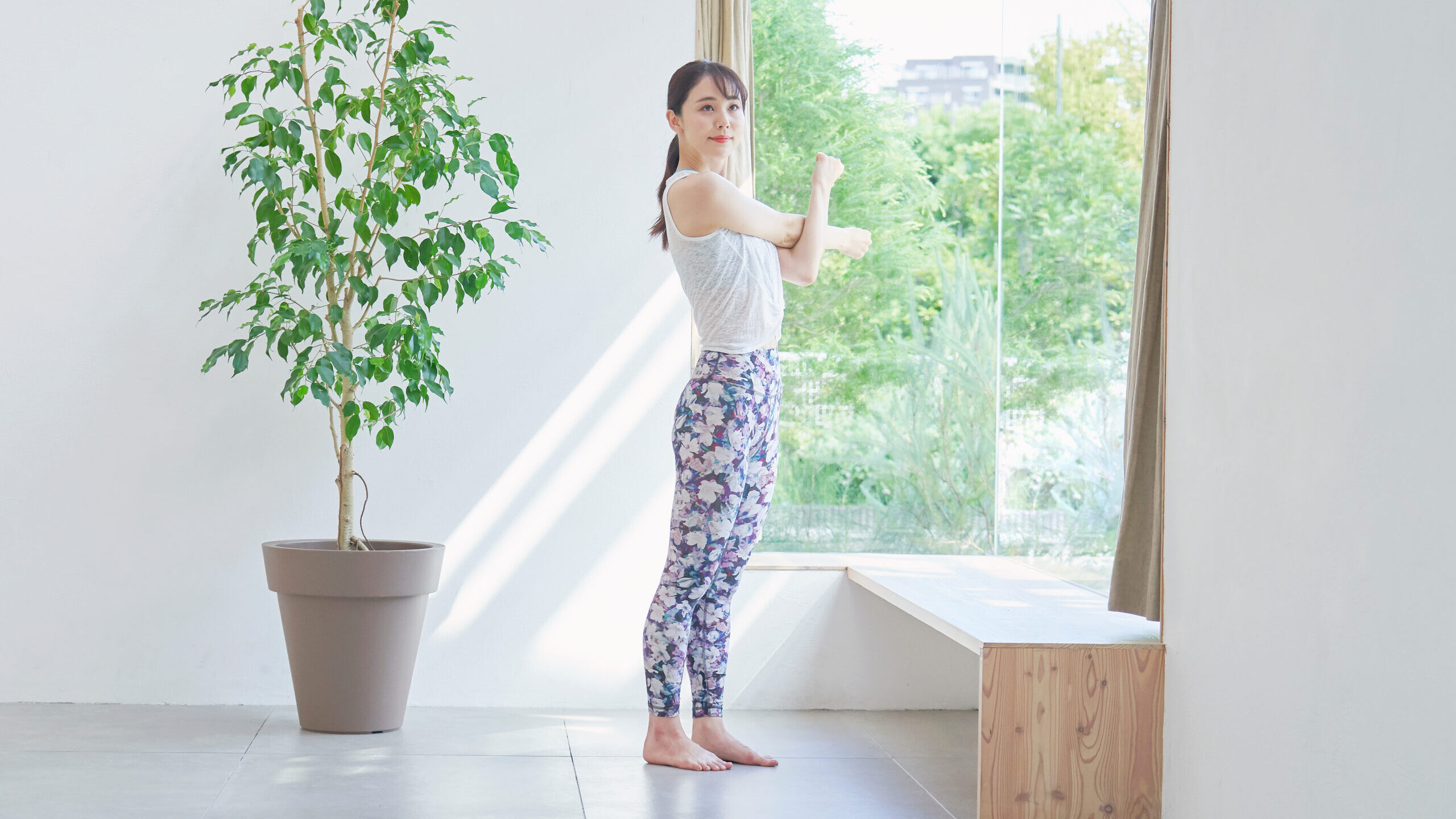 動きは呼吸に合わせてゆったり行い、体の奥にある筋肉を意識しながら動きます。
